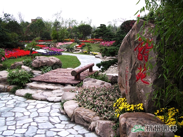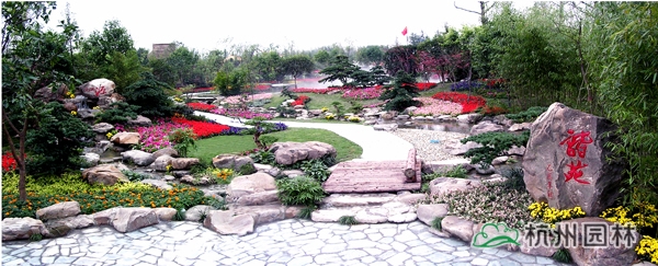 第六屆中國花博會之浙江園,又名花漫錢塘。占地面積1420平方米,呈自然式布局,全園以浙江山水為背景,以母親河錢塘江奔流入海為主線,一灣流水貫穿全園,“錢江源”、“晴空海蜃”兩大景觀交相輝映。園內綠樹盎然,花漫遍地,洋溢著浙江的朝氣與活力,體現了浙江自然山水、人文歷史、經濟社會的和諧。