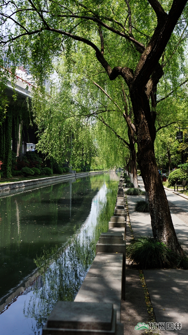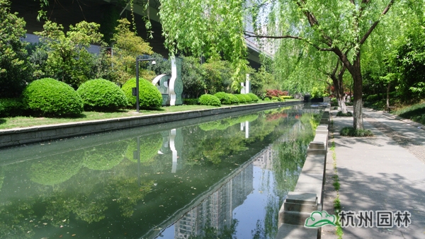 該工程位于杭城南部,施工范圍為倉(cāng)河下路至鳳山橋,內(nèi)容包括綠化種植、土方、園路平臺(tái)、廊架棧道、雕塑基礎(chǔ)、河道清淤等。工程在充分尊重歷史文脈的基礎(chǔ)上,再現(xiàn)了生態(tài)優(yōu)美的自然環(huán)境,綠意盎然的植物、舒緩平坦的園路、飽經(jīng)滄桑的古橋、栩栩如生的雕塑,與沿街的粉墻黛瓦、名人故居等遙相呼應(yīng),千年中河美景,盡顯無(wú)遺。