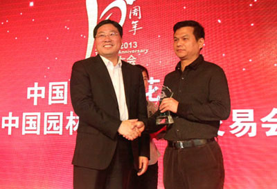 大會揭曉并頒發了“突出貢獻獎”、“貢獻獎”、“最佳合作伙伴獎”、“2013年優秀參展獎”、“2013年產品金獎”等多個獎項,以此表彰一批多年來為中國(蕭山)花木節的成功舉辦做出積極貢獻的個人和單位。其中,杭州市園林綠化工程有限公司榮獲“最佳合作伙伴獎”、“2013年優秀參展獎”,參展的產品“紅寶石”紫薇和“火煉金丹”桂花榮獲“2013年優秀產品獎”,總經理張炎良上臺領取了獎牌。