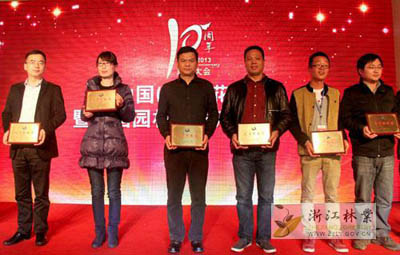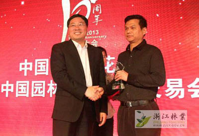大會揭曉并頒發了“突出貢獻獎”、“貢獻獎”、“最佳合作伙伴獎”、“2013年優秀參展獎”、“2013年產品金獎”等多個獎項,以此表彰一批多年來為中國(蕭山)花木節的成功舉辦做出積極貢獻的個人和單位。其中,杭州市園林綠化工程有限公司榮獲“最佳合作伙伴獎”、“2013年優秀參展獎”,參展的產品“紅寶石”紫薇和“火煉金丹”桂花榮獲“2013年優秀產品獎”,總經理張炎良上臺領取了獎牌。