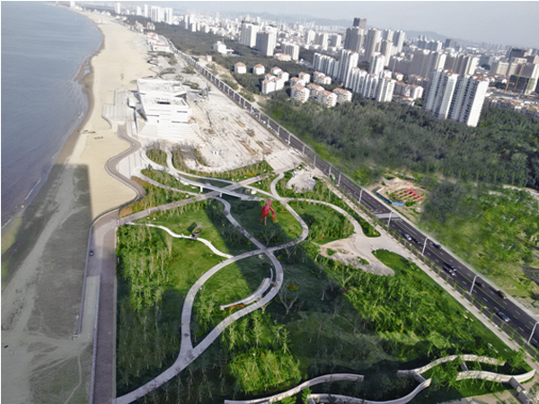 煙臺屬暖溫帶季風氣候,但是瀕海地又受到海洋性氣候的影響,經常受海潮海風侵襲和土壤鹽漬化、干旱化威脅,導致適宜生存的植物種類少、綠化難度大。該項目緊臨海邊,因此,如何正確選擇植物品種,在提高植物成活率的同時又保證景觀效果的豐富,是其面臨的一大難題。