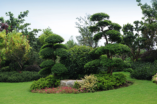 在項目主入口、次入口、中心景觀及一些重要景觀節點,黑松、女貞、水蠟、五針松、紅花檵木、紫薇等造型樹木,宛如萬綠叢中的一點“紅”,彰顯出獨特的氣韻與品味,起到畫龍點晴的效果。