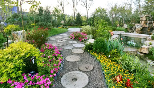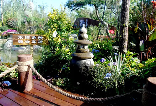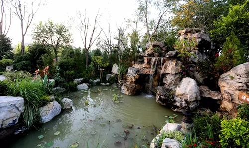 海綿城市是指城市能夠像海綿一樣,在適應環境變化和應對自然災害等方面具有良好的“彈性”,下雨時吸水、蓄水、滲水、凈水,需要時將蓄存的水釋放并加以利用。展園內采用碎石鋪就的“茶馬古道”,既能有限地補充地下水,又有一定的地表徑流削減作用。另外,園內水池邊設置植被緩沖帶,通過植物攔截及土壤下滲作用有效減緩地表徑流流速,并去除徑流中的部分污染物,體現了海綿城市理念的截污凈化功能。