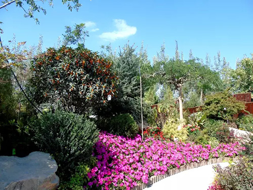 花博會開放時間是9月份,為配合開園需要,根據不同植物的開花特性及要求,采取相應的措施,確保植物的最佳觀賞效果。桂花是杭州市市花,是集綠化、美化、香化于一體的優良園林樹種,一般在仲秋時節綻放,“浙江園”的桂花全部精選自杭州畫境種業有限公司,提前運送至銀川之后,利用當地的低溫環境誘使其完成花芽分化,在開園時營造了桂花滿樹、滿園飄香的氛圍。八仙花又名繡球,花大色美,是長江流域著名觀賞植物,在明、清時代建造的江南園林中就栽有八仙花。特別是八仙花‘無盡夏’具有多次開花的特點,項目人員通過修剪、培育,促進其花芽的再次分化,使展園內的八仙花處于生長繁茂、花團錦簇的良好狀態。此外,還結合公司“一種紅楓快速成景方法”等專利,運用摘葉等形式促進槭樹科植物萌發新葉,為九博會的開幕增添新的色彩。