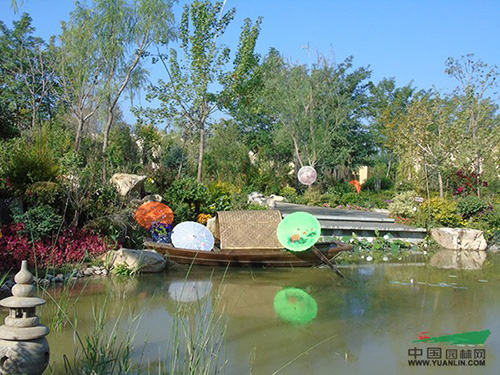 因風(fēng)沙、潮濕、鹽堿度、溫度、降水、冰凍對(duì)建筑材料的損傷,則需要根據(jù)當(dāng)?shù)氐臍夂蚝偷乩憝h(huán)境選擇適宜的園藝材料,特別是建筑方面,而當(dāng)?shù)氐馁Y料便是最好的選擇。浙江展園一改南方資材,選用了寧夏當(dāng)?shù)氐牧瘛⑼餐叩龋啻u、烏蓬船則直接從南方運(yùn)來,南北方園藝資料的有機(jī)互補(bǔ),營造出一種融進(jìn)當(dāng)?shù)靥厣恼憬瓐@林景觀風(fēng)貌。