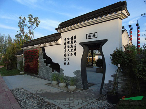 施工是創(chuàng)意由平面到立體的過程,是發(fā)揮第二次設(shè)計(jì)作用的場所。“園林建設(shè)其實(shí)就是作畫,要在真山境內(nèi)作假畫,除非水平非常高。若按原設(shè)計(jì)圖來建設(shè),入口正中的景墻是一幅畫,但是要在一根根鋼絲上面作畫,無論如何做都勾勒不出山水的靈動(dòng)。所以,我們直接采用園林‘框景’手法,采用筒瓦和鋼結(jié)構(gòu)的組合做出一個(gè)大大的“相框”,將園中的自然山水收入框中,以展園四季變化為畫,是一幅真正的自然山水畫。”方禮銀說道。