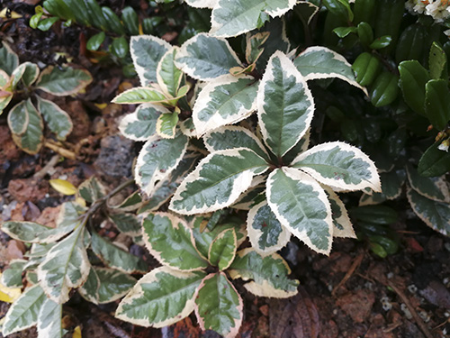 為日本引進品種,常綠地被灌木,植株低矮,帶有奶白色花邊,適合用于寄植和陰生花園營造,在半陰通風濕潤不積水的戶外環境栽培比較合適,陽臺盆栽皆可。