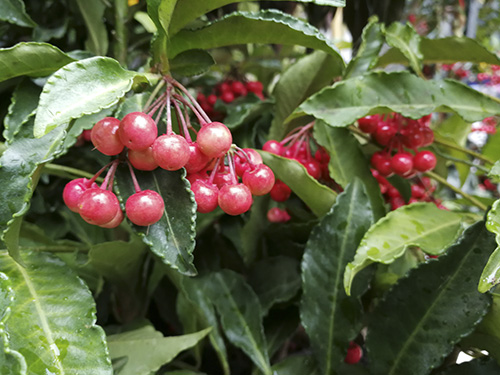硃砂根的紅果期6個月以上,且株型優美,四季常青,紅果艷麗,圓滑晶瑩,與綠葉形成強烈對比,鮮艷奪目,火紅果實給人以溫馨、熱情的美感,增添了喜慶、富貴的氣氛,觀賞性極強,是優良的觀果觀葉花卉。