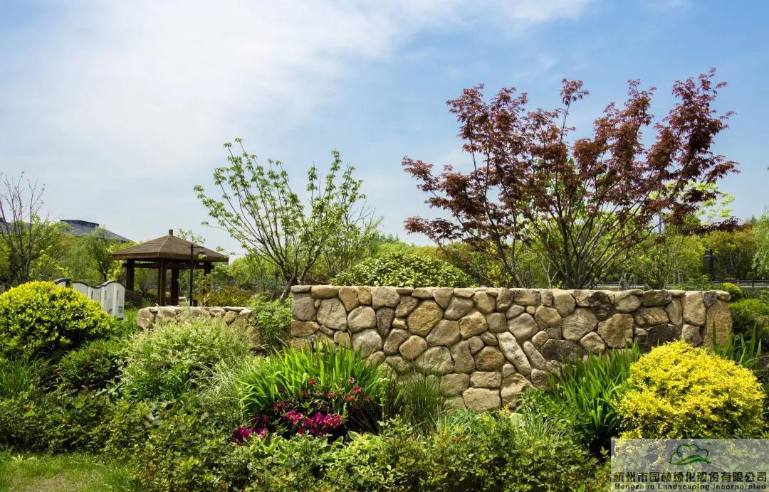 景墻邊的植物配置同樣有講究。利用銀杏、桂花、梅花、紅楓等植物營造上層空間,這些植物具有遮擋作用,能夠為庭院營造一定的私密空間。通過各種形態的小型喬灌木,打造中層空間,磚石和襯托景墻,使家家戶戶的景觀更加豐富多變。