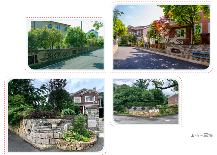 在進行景墻施工時,根據每家的房屋建筑特色選擇了不同的材料和植物配置手法。比如,建筑外立面為紅色的,景墻以紅色磚為主,搭配月季、佛甲草等植物;建筑外立面為灰色的,景墻以淺黃色磚為主,結合小木樁或仿竹籬笆,搭配石竹、美女櫻等植物;建筑外立面有大理石點綴的,景墻以桐廬石為主,輔以裝飾過的輪胎,點綴佛甲草、常春藤等植物。不同的處理手法,使得家家戶戶的景墻既有連續性,又有各自的風格。