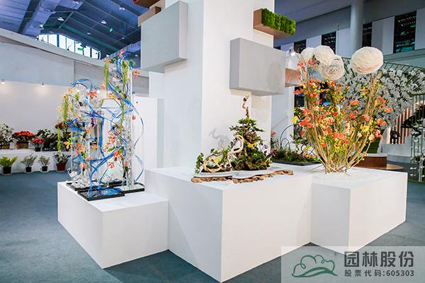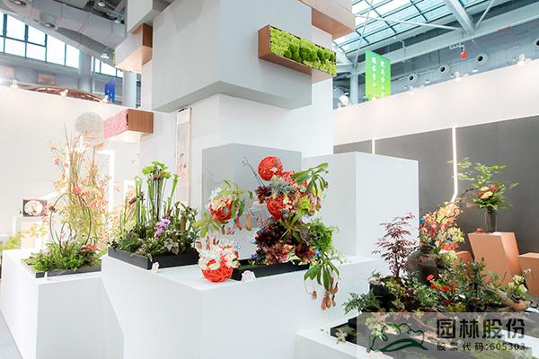 為展現對美好家園的期許,浙江館內以森林環境與住宅有機融合的未來建筑為原型設計展架,墻面制作城市剪影的燈光,搭配盆花、插花等現代園藝作品,營造出人與自然和諧共生的生活場景,展示浙江人民對美好生活的向往和高質量發展建設共同富裕示范區的決心。