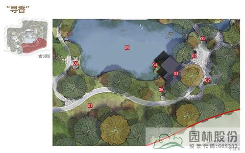“尋香”片區:圍繞西湖的“桂香、茶香”元素,以湖畔邊的樾香亭為主景展開,與茶藝小品、花境、小徑等元素結合,打造視覺、聽覺、觸覺等沉浸式景觀,形成繽紛的五感花園。