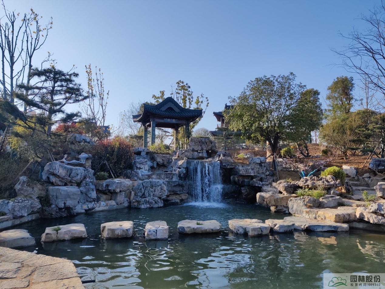 溪谷濂泉區域施工過程中,發現下雨天局部有綠化泥土外留,蔡琪明建議通過在景石、臺階位置種植地被,綠化交接處微微降低種植土高度,有效避免雨水帶出泥土。
