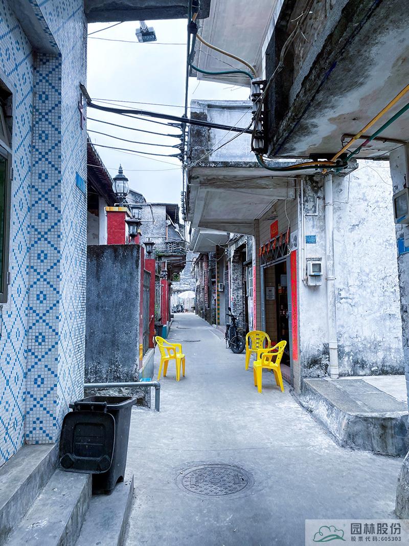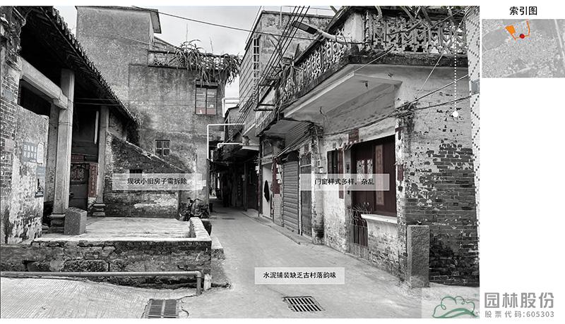 巷道改造現狀:現狀巷道為水泥路鋪裝,沿路缺少綠化,墻面磚砌樣式多樣,不統一,景觀效果不佳。