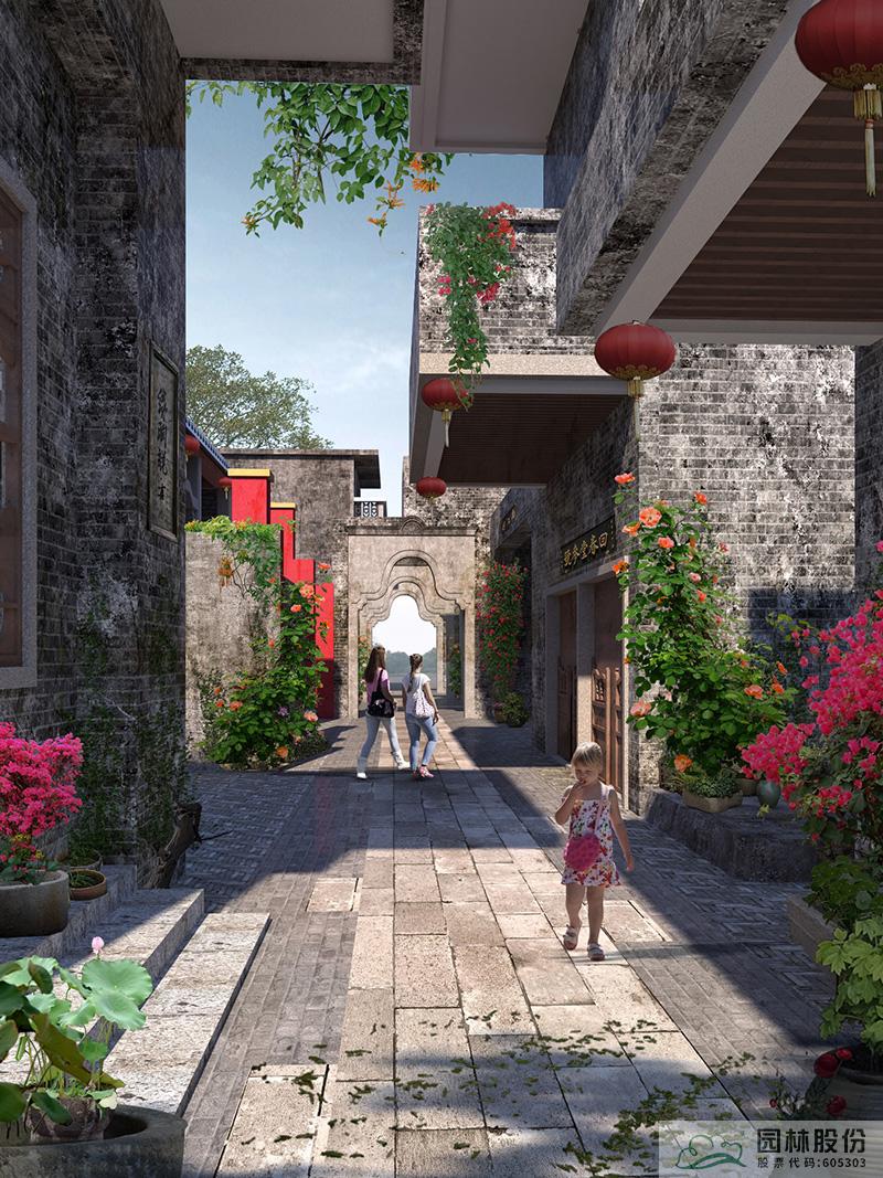 巷道改造設計說明:古巷芬芳段現狀主要由青瓦青磚的建筑、青瓦夯土墻建筑組成,巷子寬度平均約2米,設計建議局部脫落露出夯土內里的恢復夯土墻原狀,進行墻面立體綠化、鋪裝、排水溝、雨箅子等改造。