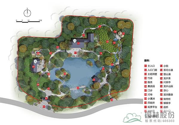 借助場地高差順勢而為,掇山理水,合理布局,形成了獨特的“一山、一溪、一湖、一島”的自然山水骨架和“二亭、二橋、二樓(民居)、三門”的建筑格局,通過景序布置、空間轉換劃分出五大展區,既符自然之理,又富美感之趣。民居農田、茶園竹林、鄉風民情在這里融為一體,通過藏、透、回、借、寓等造園手法,從有限到無限,共同組成了天人合一的錢塘人家。