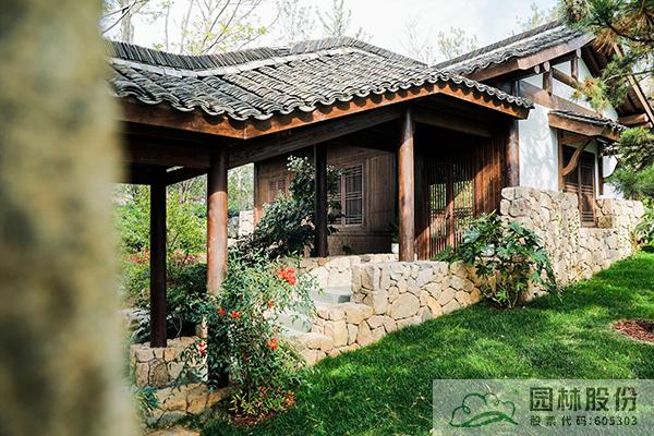 竹隱:主入口采用江南典型的錯落雙面門樓造型,木結構古雅清新,上書“家在錢塘”點明主題。正前方主題照壁形成障景,展現杭州園設計靈感與造園精神。
