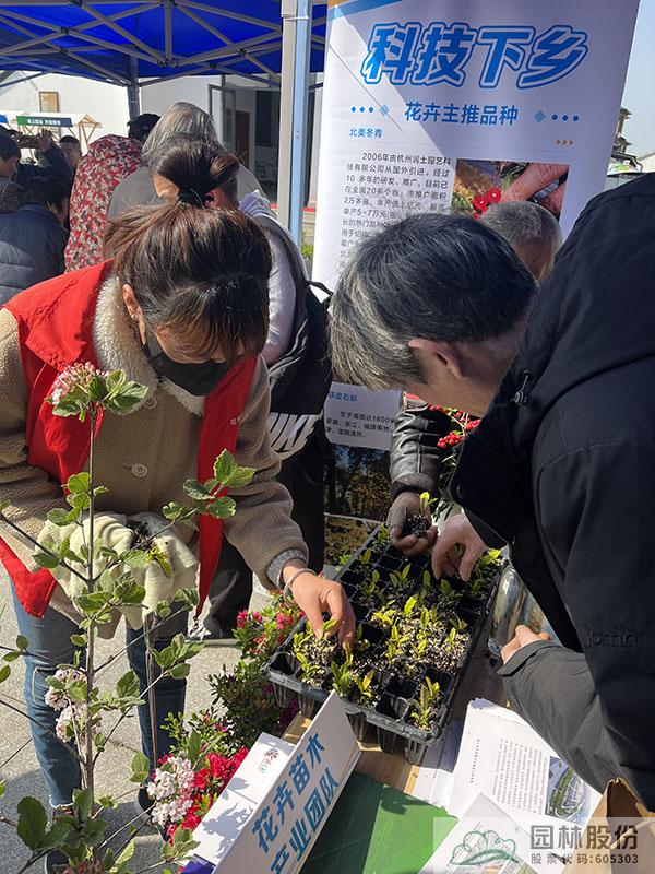 活動以“科技強農促共富、綠色低碳迎亞運”為主題,提供技術培訓指導服務、產品展示推介等科技助農服務,現場人頭涌動?;ɑ苊缒井a業團隊的展位展出了多家成員的新優產品,吸引了現場許多人圍觀。其中,園林股份的新優產品彩葉冬青、莢蒾等備受關注,大家紛紛前來咨詢,沈柏春詳細解答了相關產品的特性、組培技術等,大家對新產品的熱情超乎想象,活動還未結束,園林股份的組培種苗已一棵不剩。