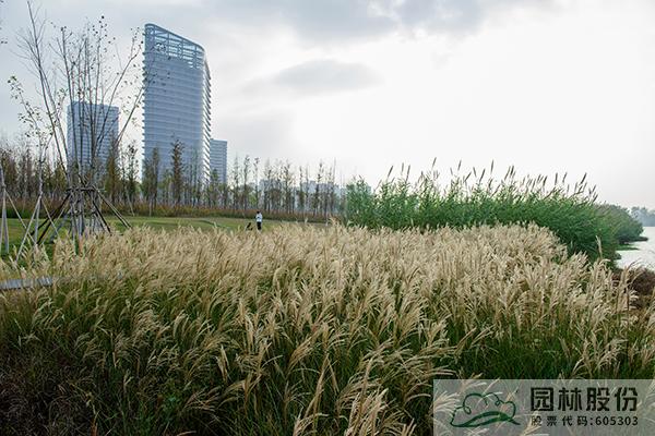 植物選擇從生態及品種多樣性出發,遵照生態適應性選用鄉土品種,喬木類包括香樟、濕地松、黃山欒樹等,地被主要有大濱菊、月見草、細葉芒、蘆葦、狼尾草等,合理搭配,在空間、色彩、節奏方面獨具匠心,打造了高低錯落、疏密有致的和諧景觀。