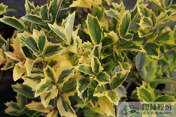 冬青系列我們帶來‘金橡樹葉’、‘金葉斯特芬’、‘代茶’等品種,其中金橡樹葉冬青更是彩葉冬青中的佼佼者。新葉金黃色,老葉在葉緣呈現出豐富的金色,到中心變成綠色,全年都能保持金色的觀賞效果。無論放在公園、花壇還是庭院,都能帶來獨特的視覺享受。目前市場數量保有量較少,市場前景較好。