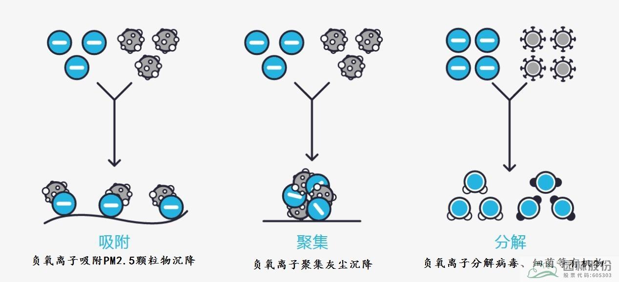 負氧離子具有極佳的空氣凈化效果,這主要表現(xiàn)在以下三方面:首先,針對室內(nèi)“霧霾”(尼古丁煙堿、揚塵、油煙等有害PM2.5懸浮顆粒物),PM2.5顆粒容易吸附空氣中的氣溶膠而帶上正電荷,負氧離子與其相互吸引粘附,最終發(fā)生中和沉降,消煙除塵的功效立竿見影。其次,負氧離子還能降解甲醛、苯等裝修污染物,更安全。再次,負氧離子還能起到抑菌作用,當與細菌、霉菌、病毒接觸時,負氧離子攜帶的多余電子,會使微生物蛋白質(zhì)結(jié)構(gòu)改變(蛋白質(zhì)兩極性顛倒)或能量轉(zhuǎn)移,從而引起死亡。