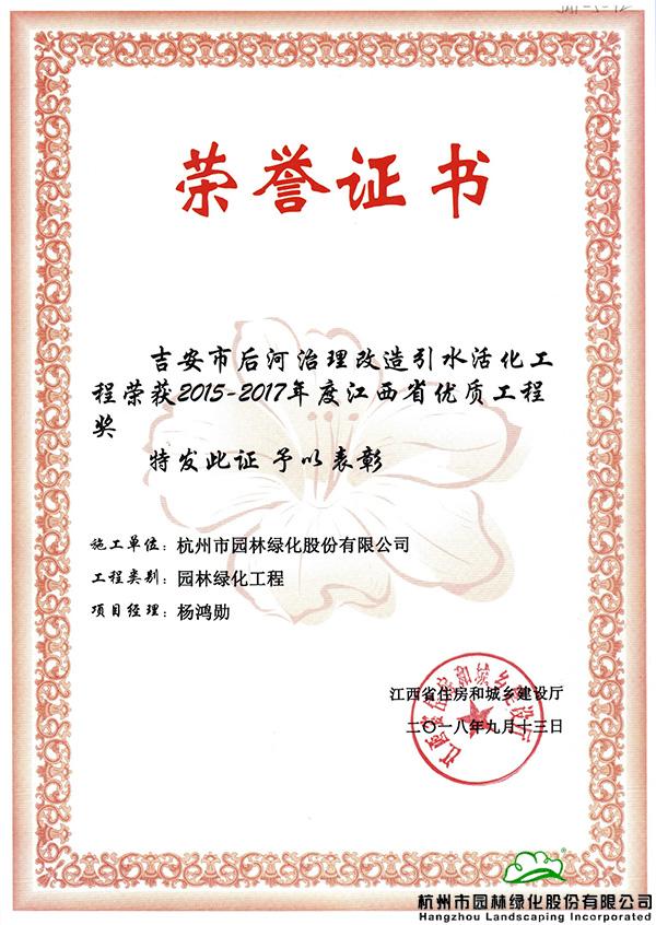 “中國風景園林學會‘優秀園林綠化工程’大金獎”